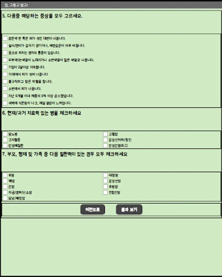* Please note that this application does not make a diagnosis related to health, and is intended to recommend examinations with reference to thesis and medical knowledge, and is not a substitute for a doctor's diagnosis and judgment.