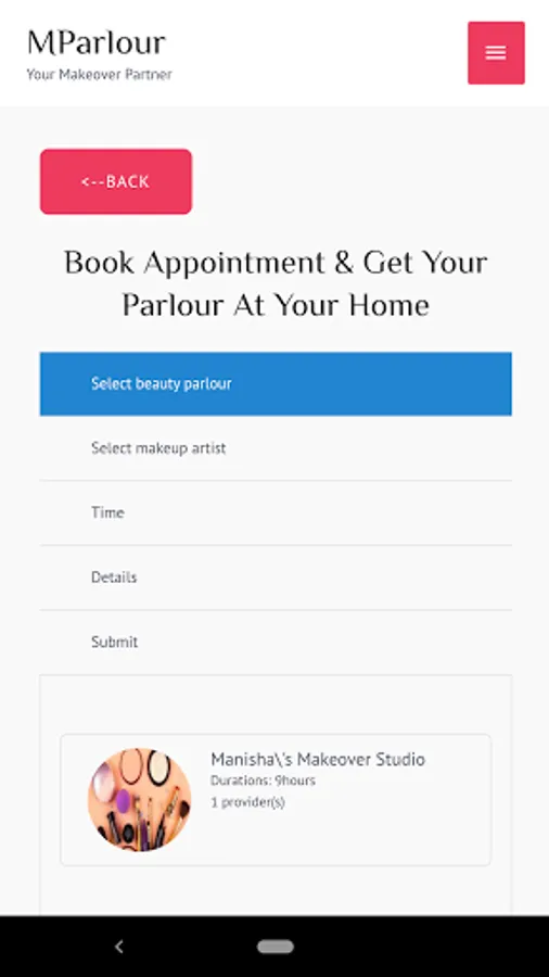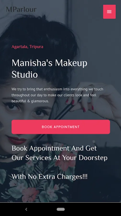 MParlour is the first app in Tripura where we are providing online appointment booking system of Beauty Therapist, in this app you can book appointment to get almost every kind of beauty parlour services at your doorstep. Presently we providing our services to Agartala, West Tripura Area. Contact us for more information.