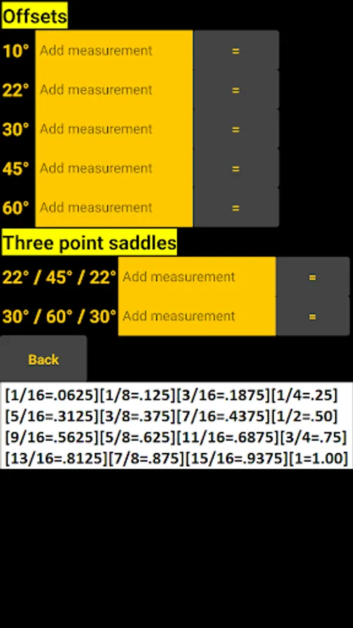 The BEND MULTIPLIERS button brings you to a page where you just have to add in your measurement and hit the = button. It will give you the proper multiplier measurement for the bend you intend to make.