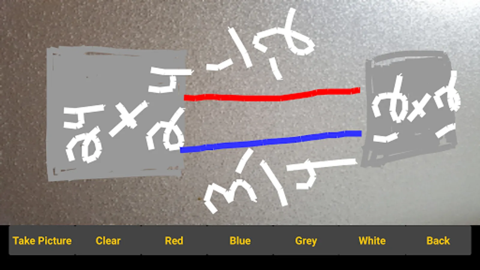DRAW PIPE RUN is designed to help plan and organize your conduit runs. You can ether draw your runs on a black background or take a photo of the area your pipe run will be in. The four colors to choose from are red, blue, white and grey. Note: The picture will not save in your photos. If you require to keep the runs you drew out we advise you to take a screen shot of it..