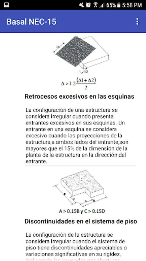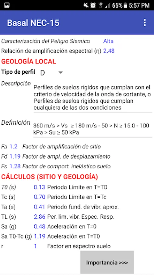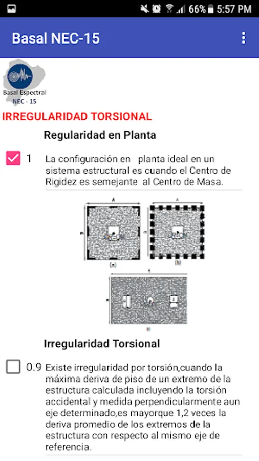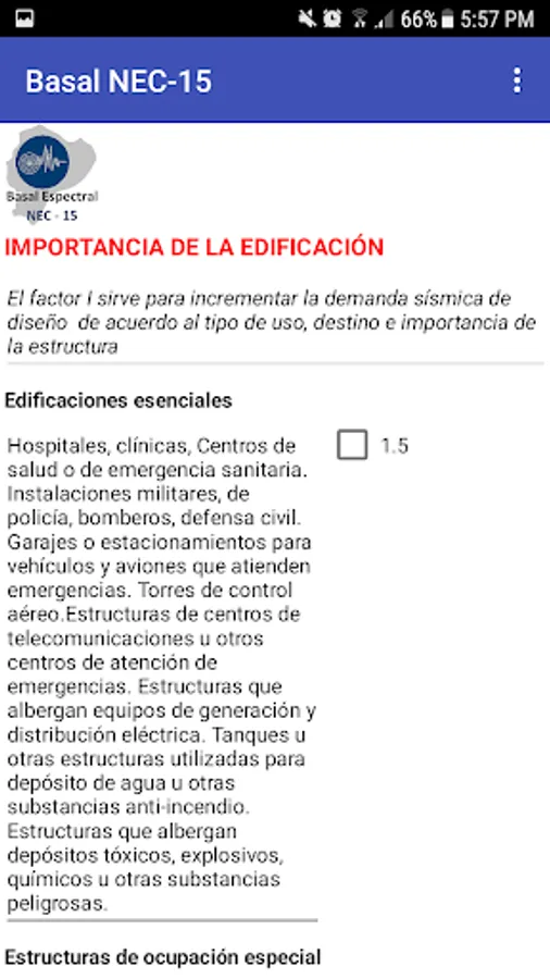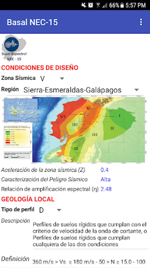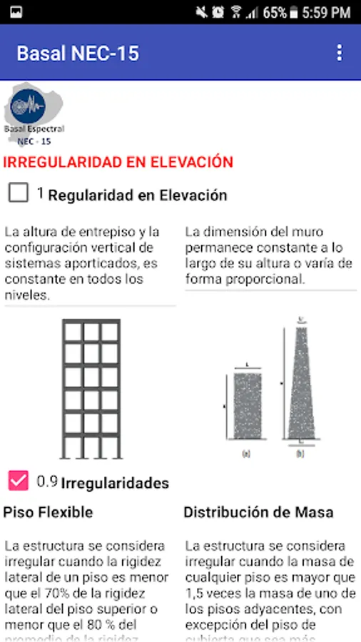 The "Basal Spectral NEC-15" application uses 6 screens with the seismic analysis parameters proposed by the Ecuadorian Construction Standard of 2015, in an easy-to-operate virtual environment whose result is presented on a screen with the tabulated summary of the calculations and graph of the elastic and reduced design spectra obtained from the information entered by the user.