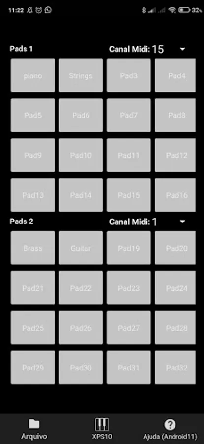 Choose the midi channel that touchdaw will perform in XPS10 performance.