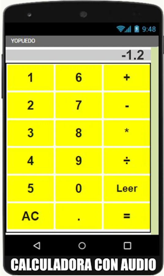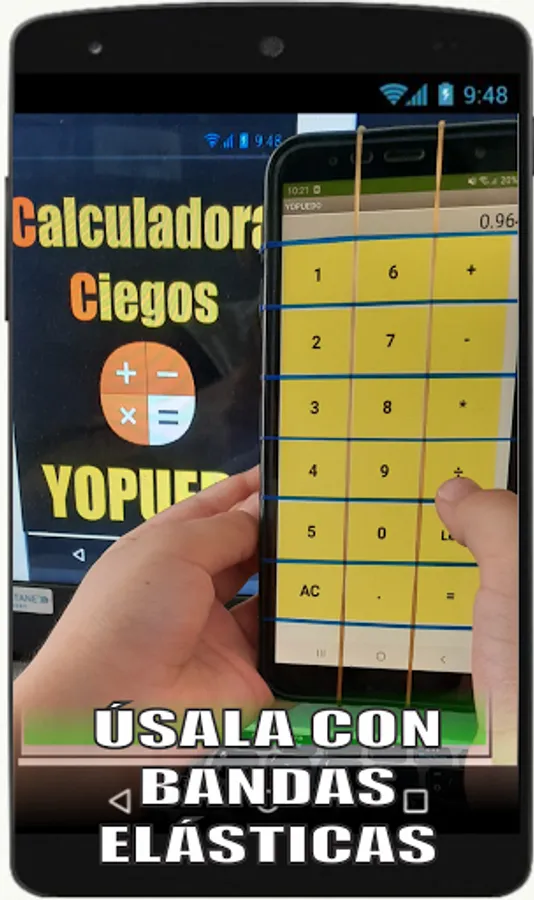 Blind Calculator, is an intuitive application designed so that blind or low vision people can perform calculations through audible buttons that allow to instantly know the processes that are being carried out, until they reach their respective answers. It is recommended to use initially with elastic bands until the person achieves the necessary skill for its correct use.