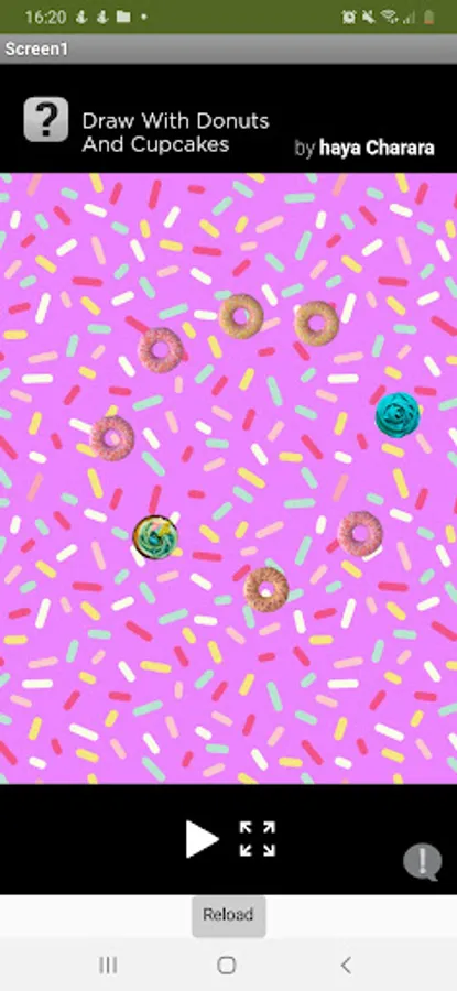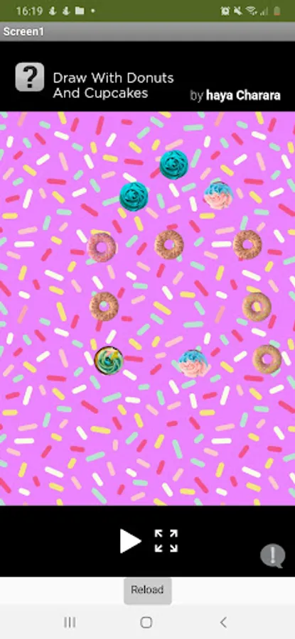 Click on the screen to draw using donuts and cupcakes.
