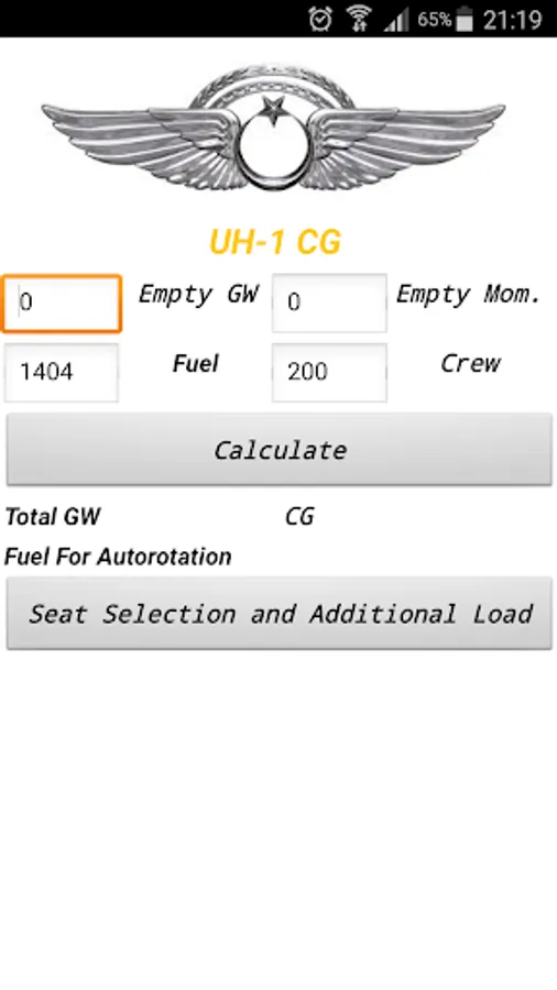 This App is a tool for calculating Uh-1 helicopter instructors autotoratio the cg.this Necessary tool can calculate fuel for CG to get after 140. Also you can pick up seats or any station cargo to places. This program is designed for training Purposes and understand that algoryhtms used in this app was generated with manual excessively inputs.th the results are tested and tuned for minimum errors.always remember that results may containe the errors.us this app on your own risk !!!
