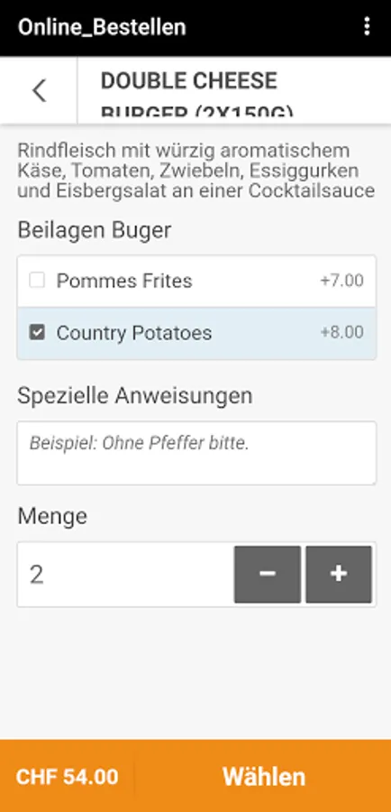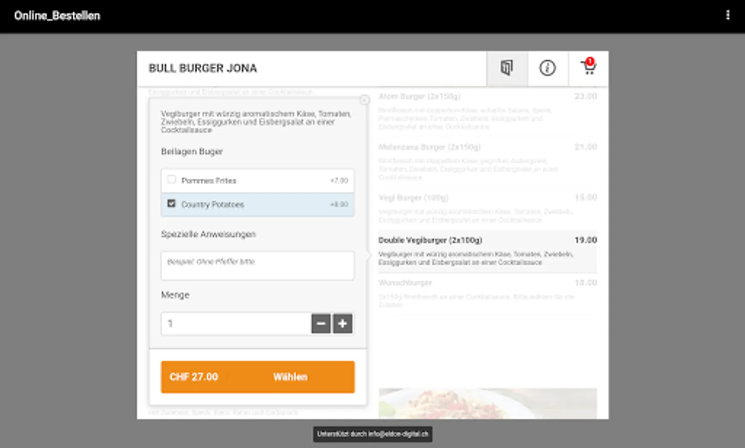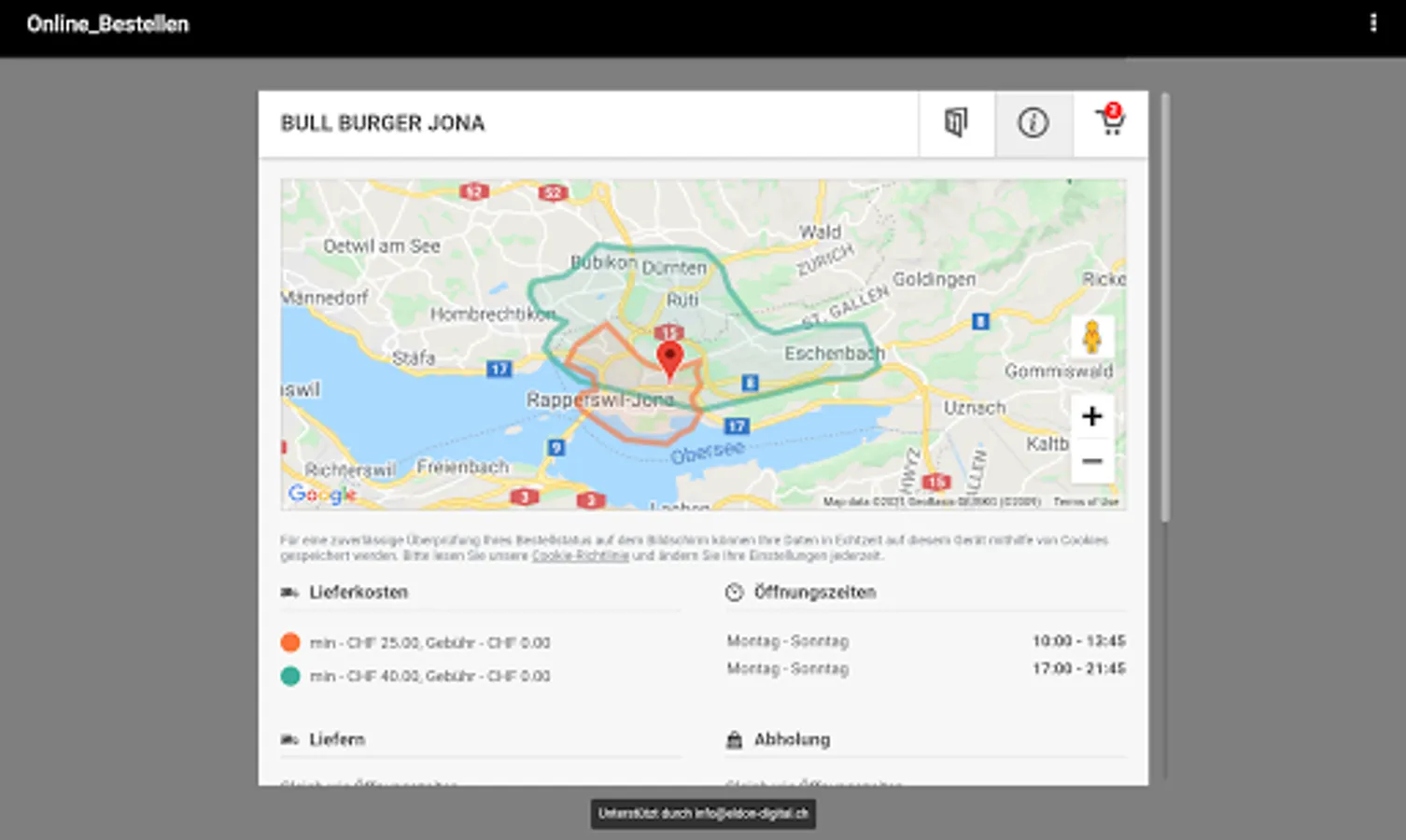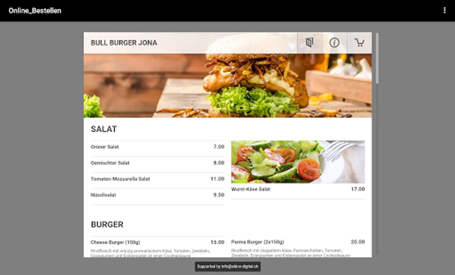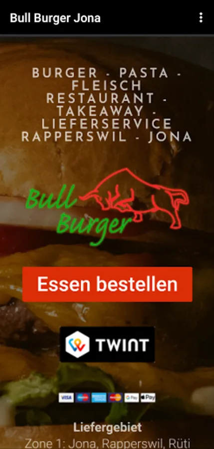 Bull Burger Jona is one of the most popular burger restaurants in the region. But our pasta and cordon bleus are also very popular. In our APP you can conveniently pre-order all of our dishes for delivery or collection. The APP saves your personal information (name, address, payment method) after the first order. This enables an even faster order process the next time