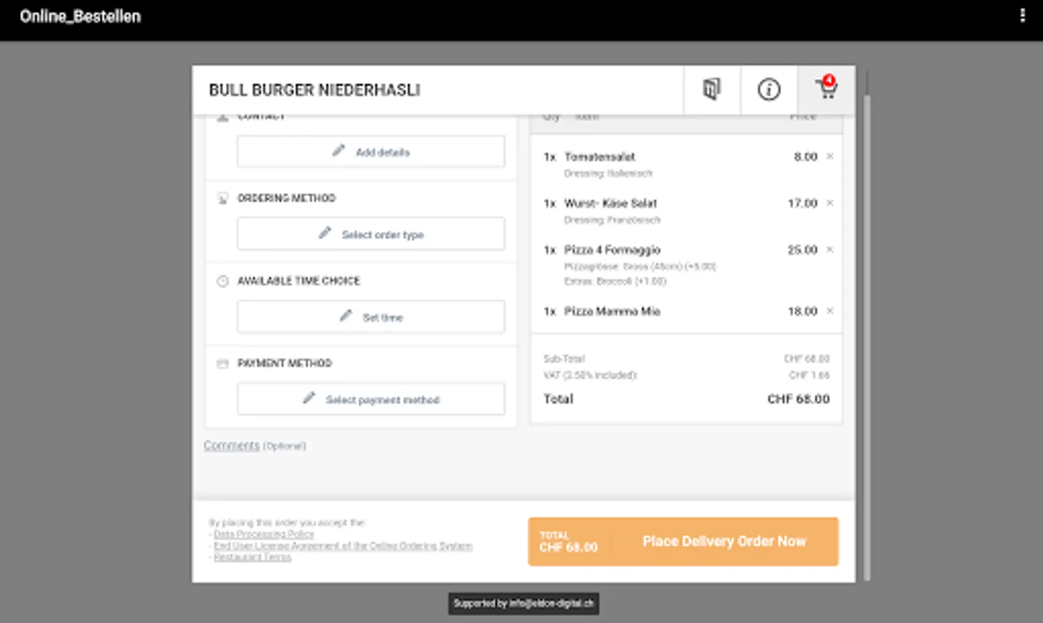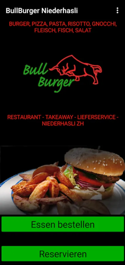 Bull Burger Niederhasli is not only well known in the region for its burgers. In our APP you can conveniently pre-order all of our dishes for delivery or collection. The APP saves your personal information (name, address, payment method) after the first order. This enables an even faster order process the next time. The APP also offers the option of making reservations and pre-orders. Make a reservation and tell us what you would like to eat. The food will be ready in a few minutes when you arrive.