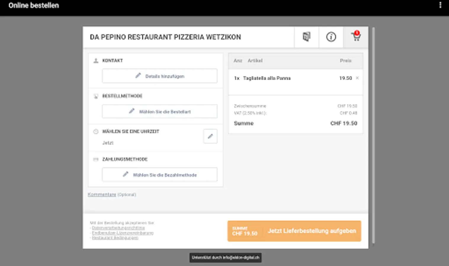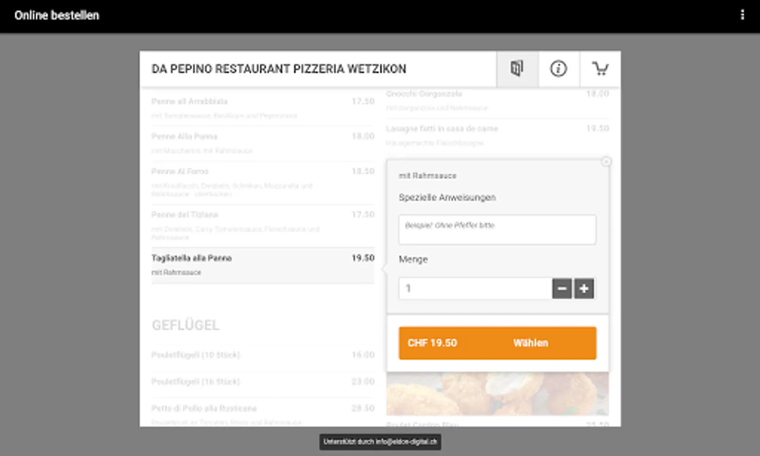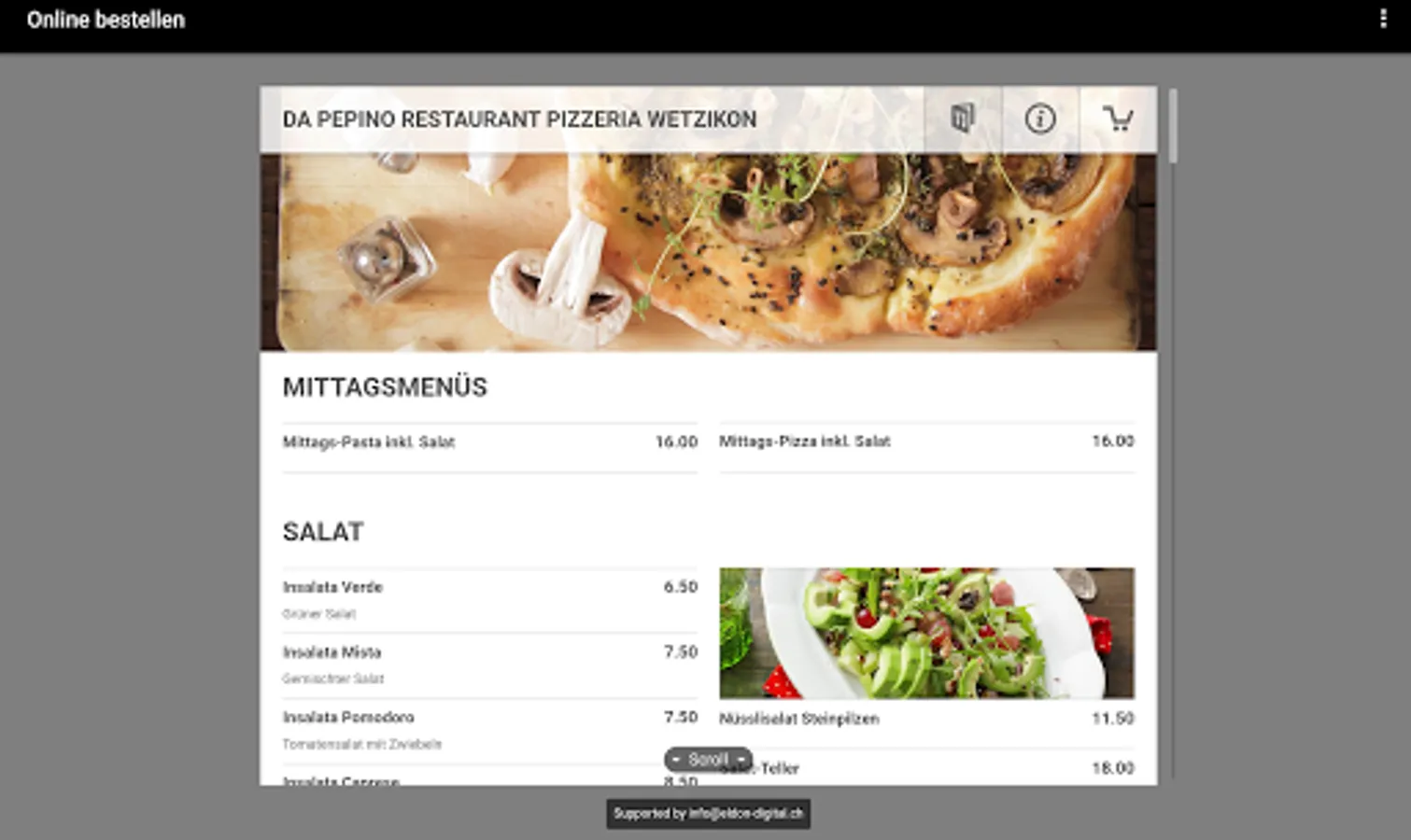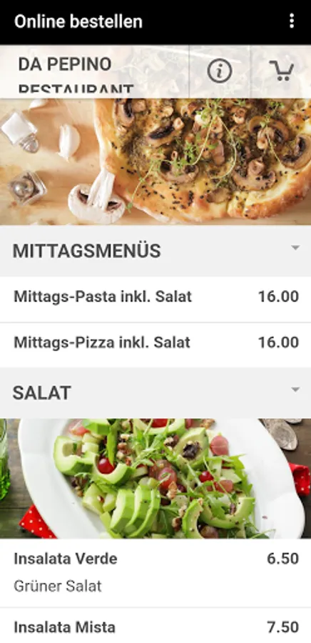 The Da Pepino restaurant is popular with young and old and is known for its good cuisine. In our APP you can conveniently pre-order all of our dishes for delivery or collection. The APP saves your personal information (name, address, payment method) after the first order. This enables an even faster order process the next time