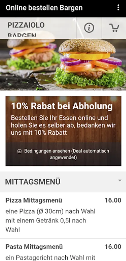 Pizzaiolo is popular with young and old and known for its good cuisine. In our APP you can conveniently pre-order all of our dishes for delivery or collection. The APP saves your personal information (name, address, payment method) after the first order. This enables an even faster order process the next time