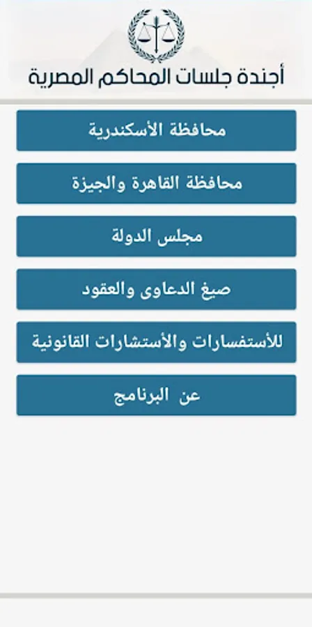 من خلال تطبيق أجندة جلسات المحاكم المصرية يمكنك الأطلاع على أجندات الجلسات الخاصة بالمحاكم المصرية ومعرفة قرارات الجلسات والأحكام.