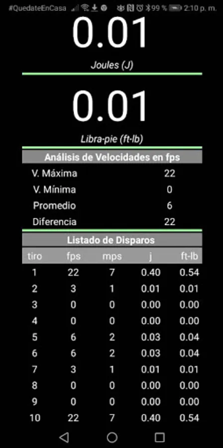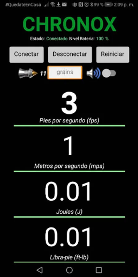 This App is a user interface for the electronic device that measures the velocity of the projectile, which must be acquired and adapted to the barrel of the weapon to be paired via bluetooth to the App that performs the measurement and data analysis.