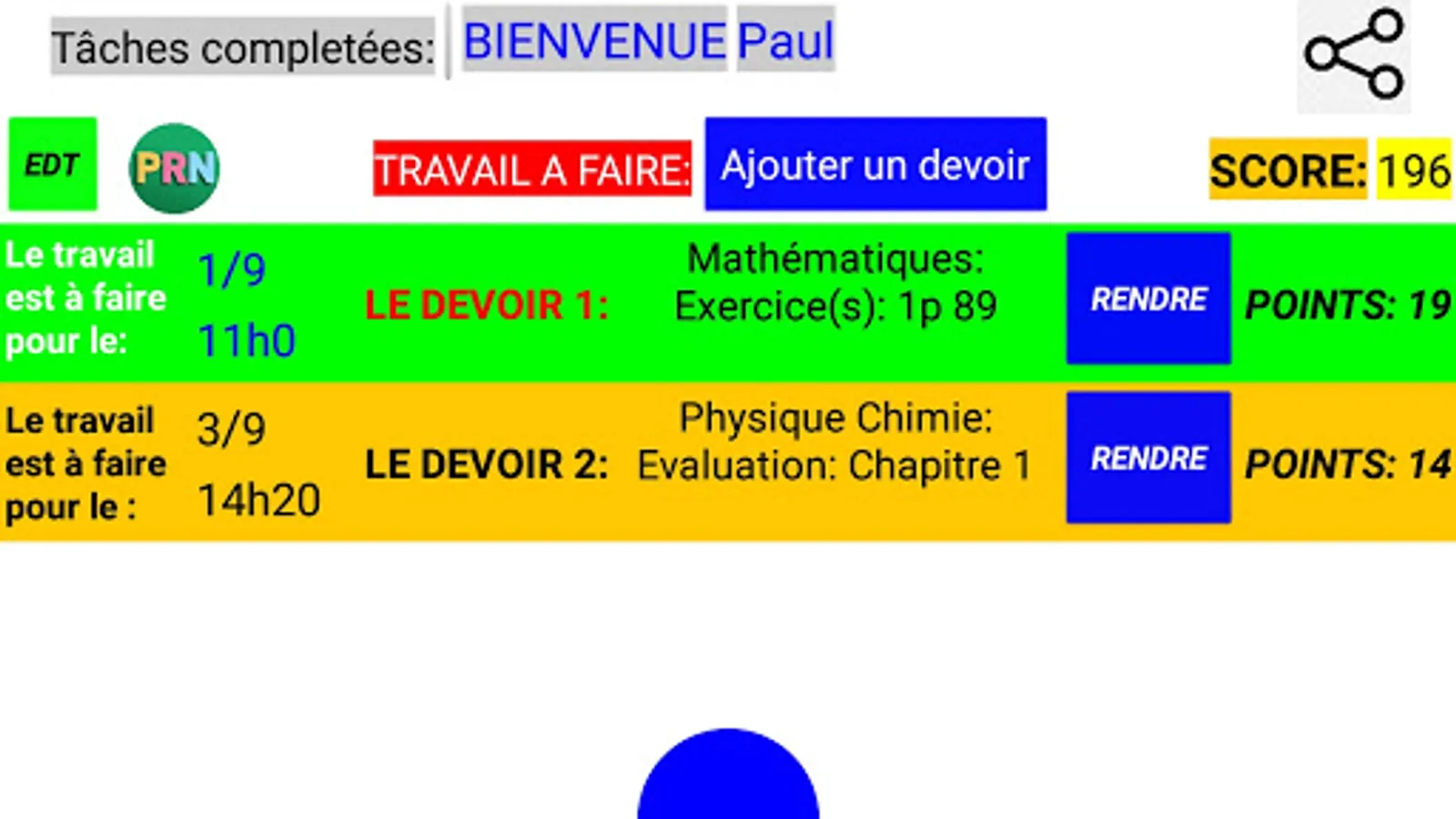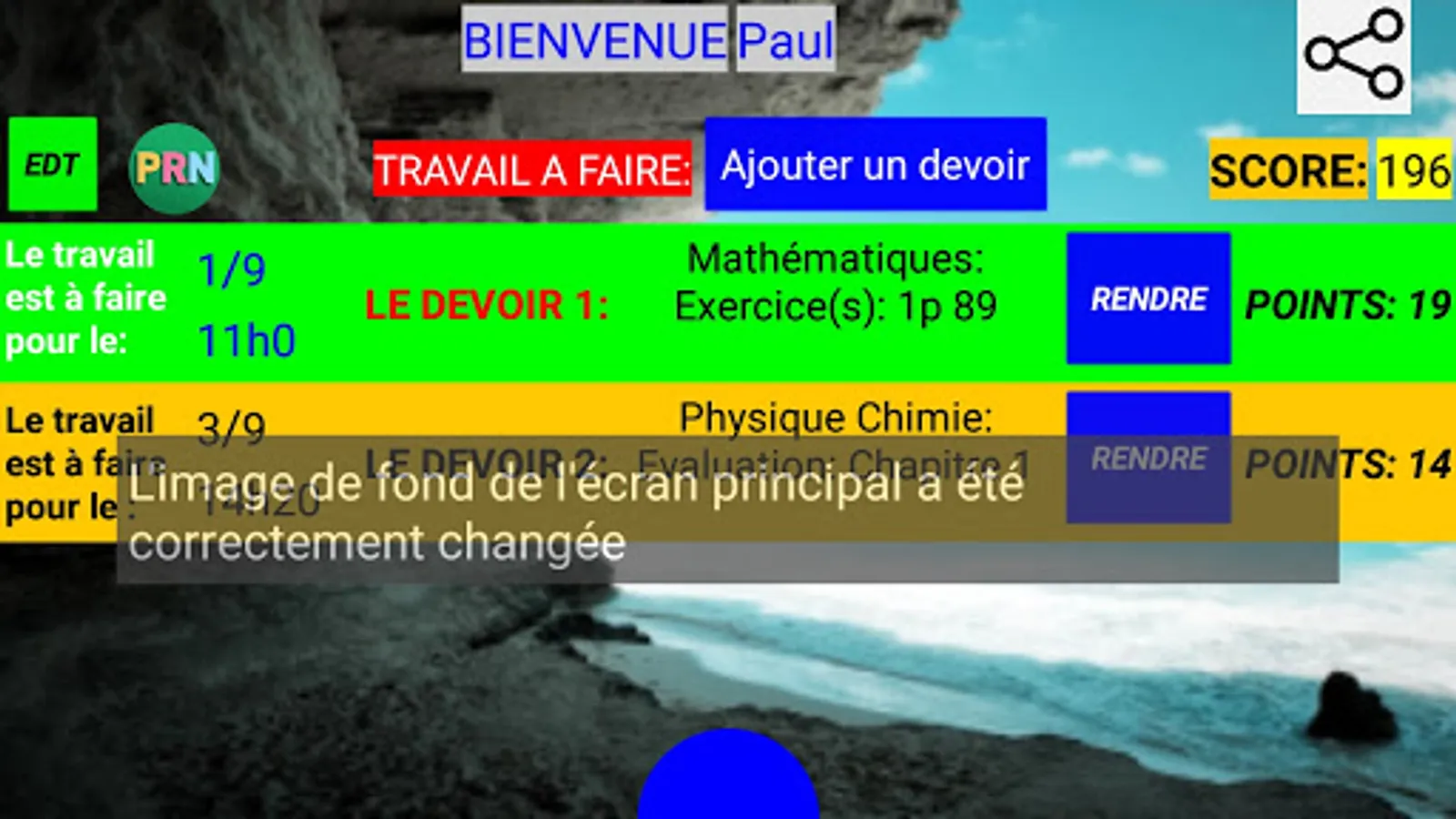 The app also provides quick access to the EDT, and the student's institution website (but also ProNote), can set alarms to remind the user to finish and hand in their assignment, and can also send notifications as a reminder.