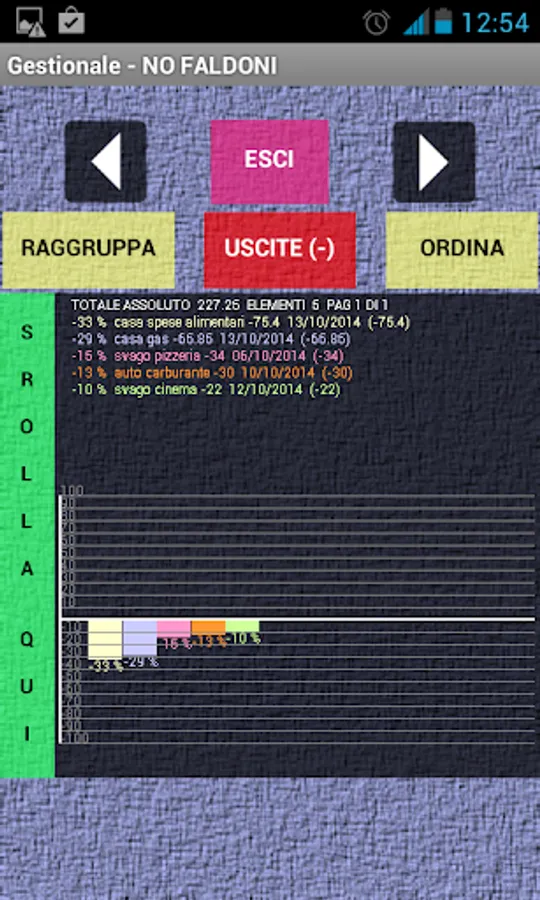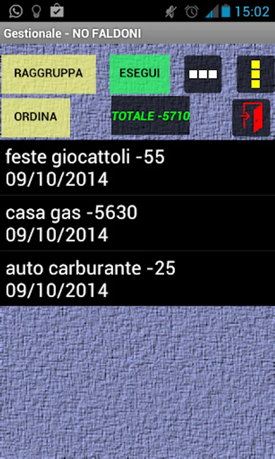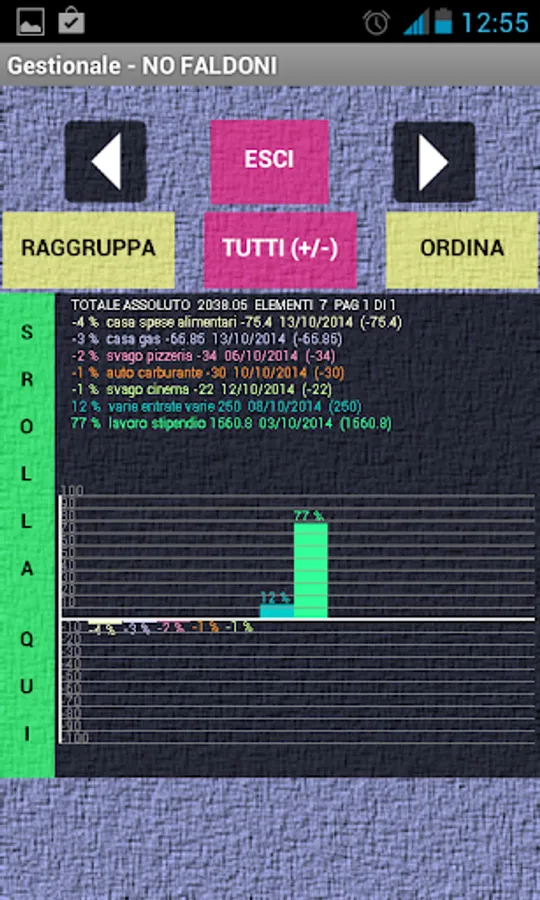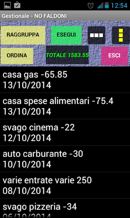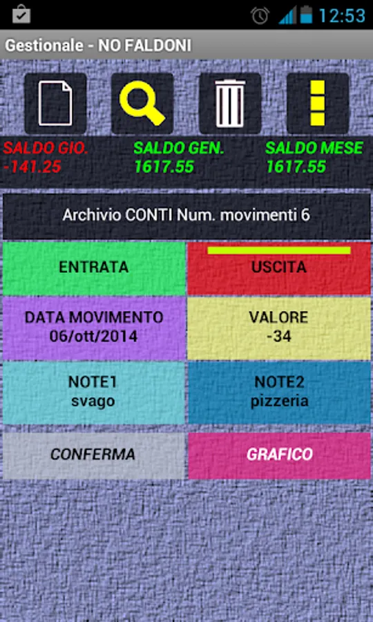 E 'possible to manage the movements of give and take with the situation always a video of the totals for the day, month and overall, manage entries "Note1" and "Note2" (with a customized features to note, such a sign, the amount and automatic update of 'amount) then enter or import them from other csv file.