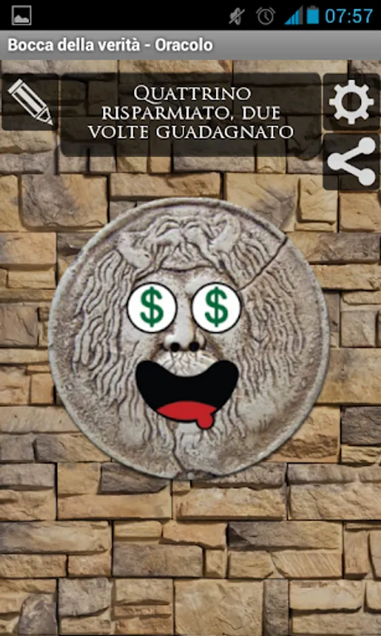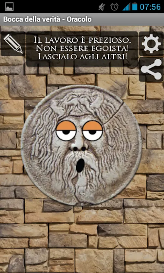 This app will take care of you by answering any questions! Will be able to give you useful tips will make you laugh with his aphorisms, jokes, surprised with his predictions, enlighten you with proverbs, riddles, riddles and pearls of wisdom, accompanied by his funny faces.