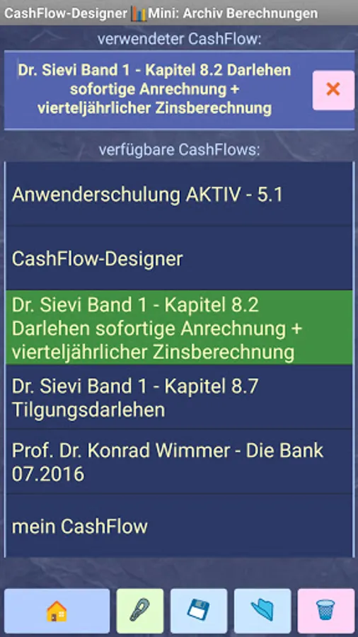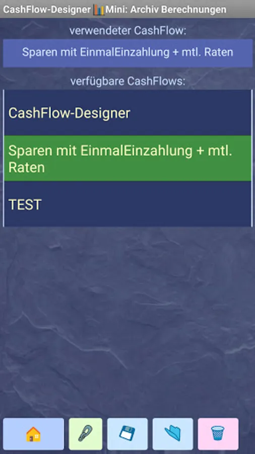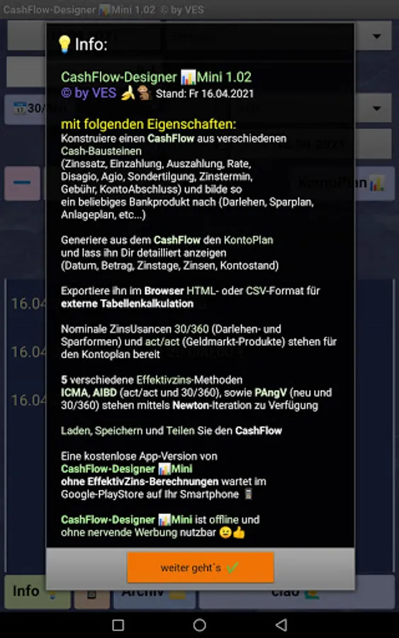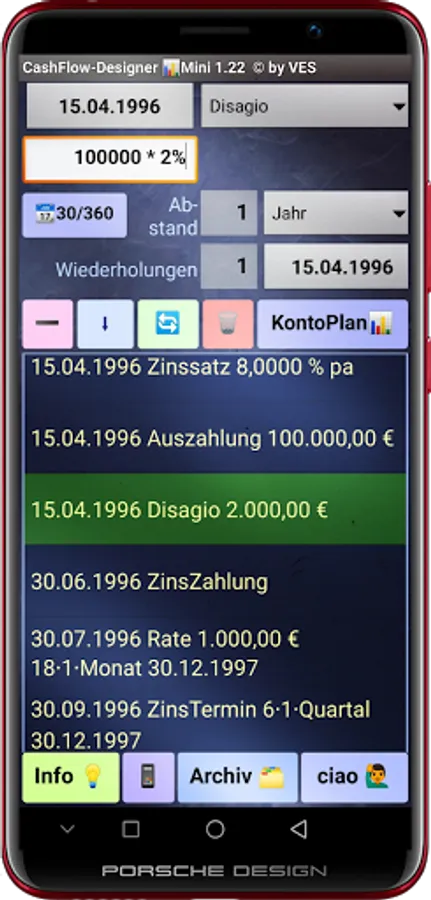 The CashFlow-Designer πMini app has the following features: