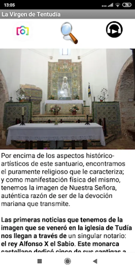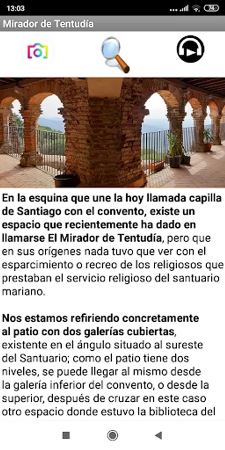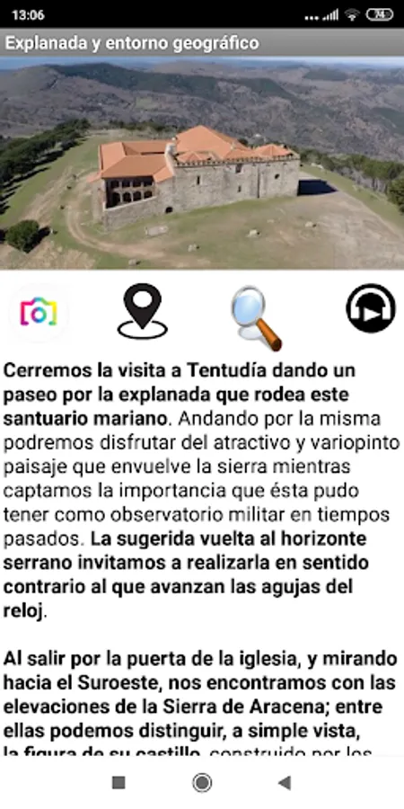 The App includes texts, images and audioguides on the history, ceramic altarpieces, burials, surroundings, vicarage and all the rooms of the enclosure, so that the traveler has a detailed information of all the heritage that encompasses the Monastery of Tentudía.