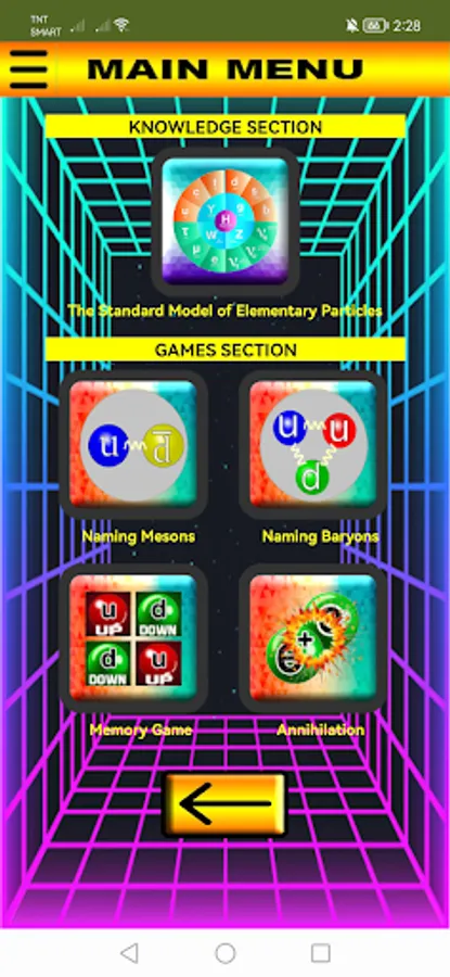 This mobile application aims to provide basic knowledge of elementary particles to all learners around the world (especially kids). It contains simple games and graphics which acquaint one with some of the elementary particles by playing the memory and matching game, and quark combinations through naming baryons and mesons. Also, familiarize yourself with electron-positron annihilation.