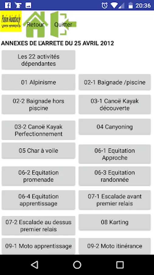 All the regulations of the ACM (Home of leisure, extracurricular, extracurricular, Center of holidays, specific stays, colo, ventilated center, ..) in image or in texts, with the choice