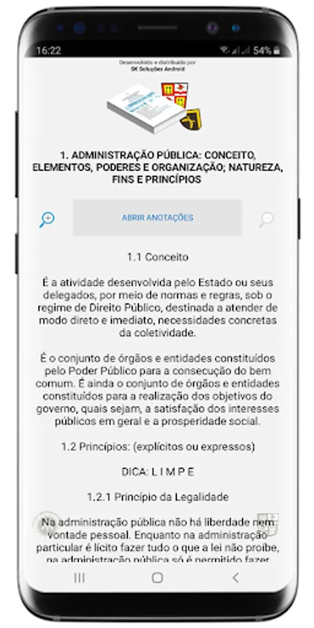 Access to the application does not depend on the internet, and one of the numerous advantages is the possibility of taking notes and summaries within the screen of each subject studied, which will allow the candidate to access, study and review anywhere, and at any time, whenever you want.