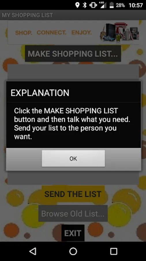 Preparing a list of needs before going shopping prevents both food waste and waste of time. Push the Make Shopping List button, talk your needs, send your list to person you want. Hoping to use it with love on peaceful days...