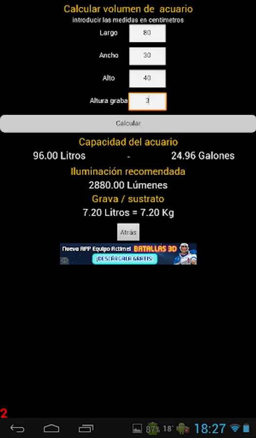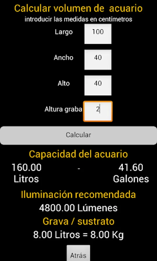 This application consists of a calculator with which you know the volume of liters of water capacity, as recommended lumens / guidance for plants twilight light.