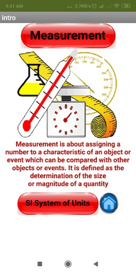 Measurement is the assignment of a number to a characteristic of an objector event which can be compared with other objects or events. It is defined as the determination of the size or magnitude of something. In this APP, you will learn about units of measurements
