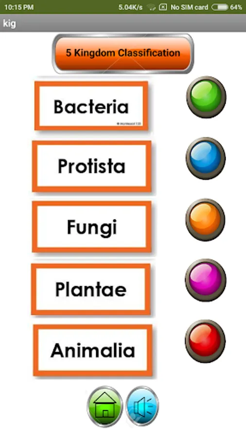 The five-kingdom system of classification for living organisms, including the prokaryotic Monera and the eukaryotic Protista, Fungi, Plantae and Animalia