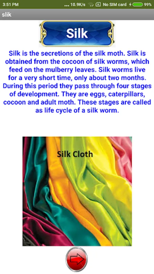 Silk is the secretions of the silk moth. Silk is