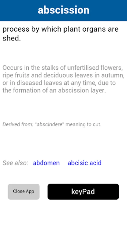 The app has approximately 200 biological terms applicable to Grade 12, based on the current CAPS Document (simply: the current South African syllabus). Each term has the following associated with it:
