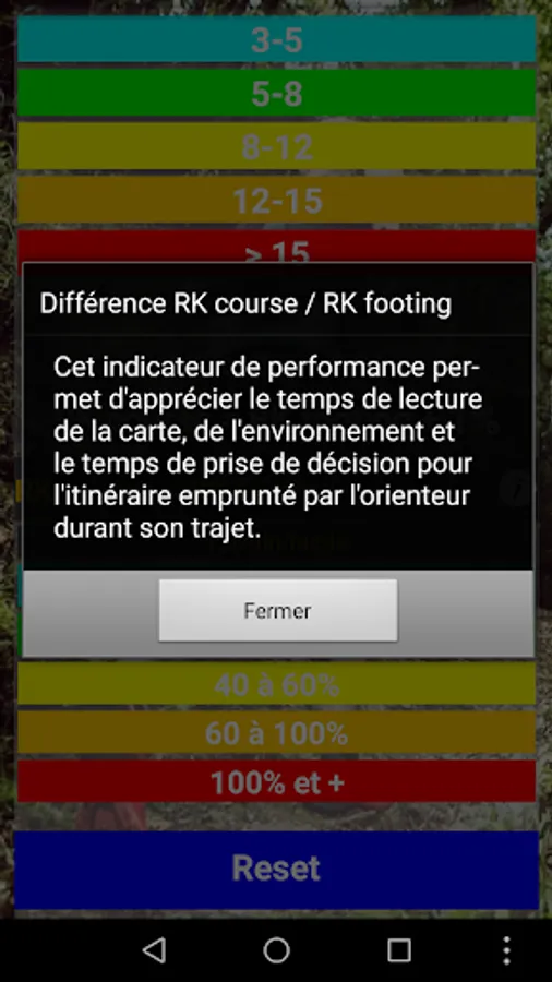 Additional indicator: the difference between the RK performed during a tour and said RK "footing". More Pathfinder is near its RK "jogging", the more effective in its map reading and route choice.