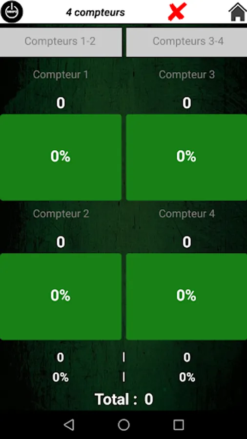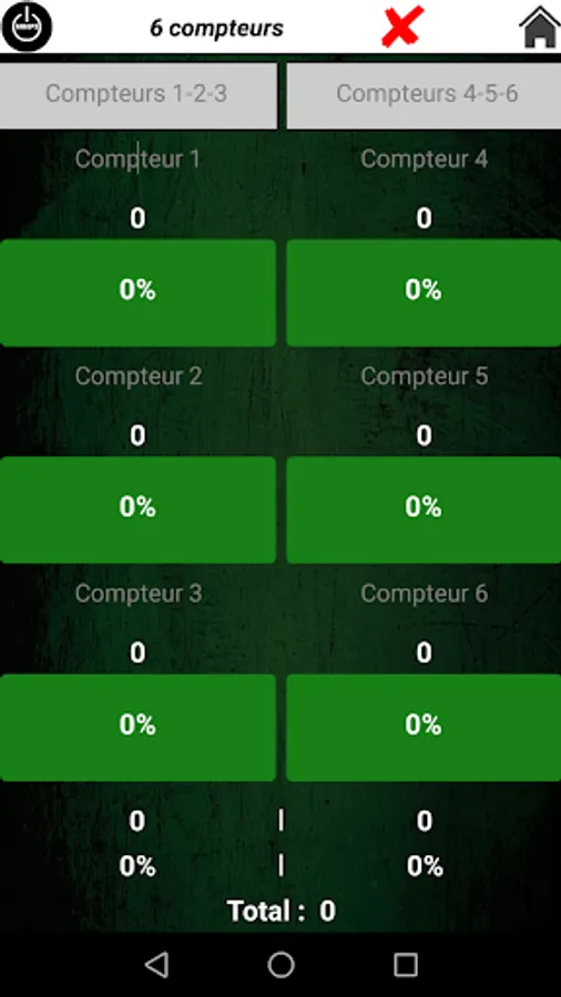 Application in which there are several counters. These counters are correlated with each other to make the data collected by the student more readable. You will find in this application several counters with more or less buttons: a double counter, a triple counter, a quadruple counter and a six-meter counter.