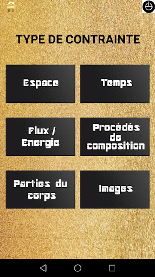 Different types of constraints: space, time, energy, methods of composition, parts of the body, images.
