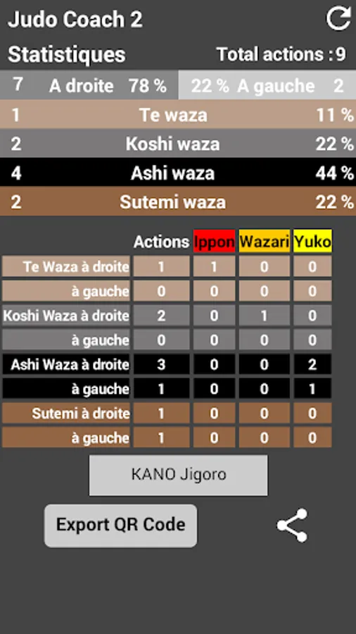 Application smartphone or tablet for practical analysis in Judo club or EPS. This application allows to give feedback to the judoka.