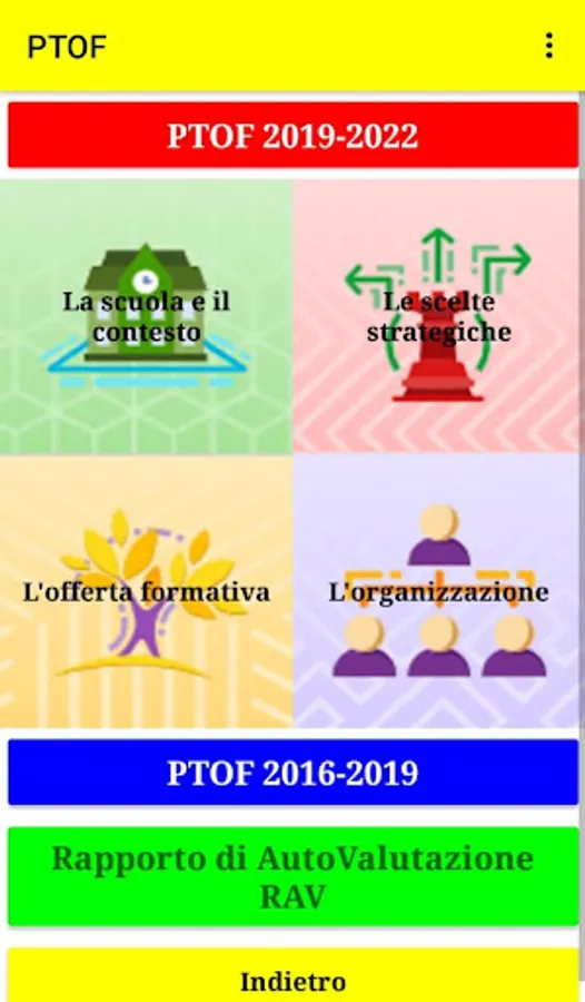 1. Direct access to the school's PTOF: by clicking on the icon it will be possible to directly access the institute's PTOF by downloading the chapter you want to view in PDF format. It is also possible to view the Self-Assessment Report of our Institute.