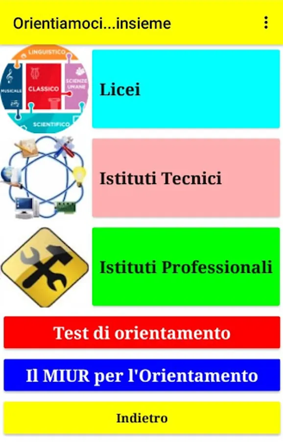 3. Access to the Orientation area: this area will help families and parents in choosing the Second Degree Secondary School. Inside there is a list of the various high schools of the territory divided into high schools, technical and professional institutes. Clicking on each Institute will open the internet page of the same. In the same section there is an orientation test for pupils of the Third Class who are preparing to choose the high school and, finally, a quick link to the website of the MIUR dedicated to the Orientation.