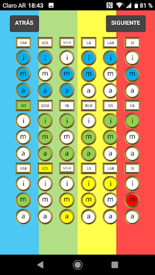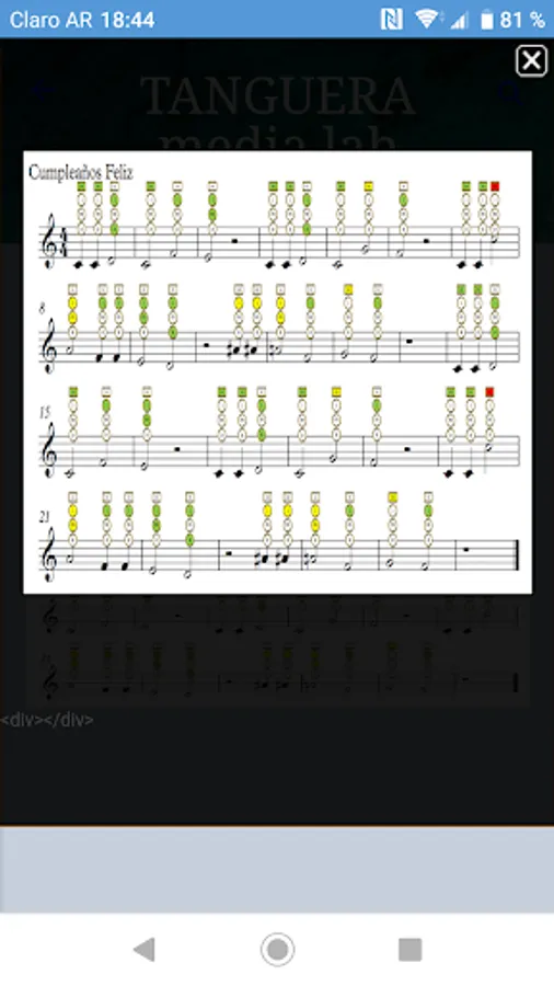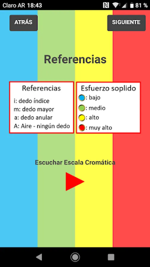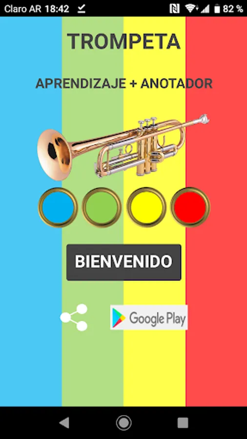 Approach to the trumpet through the use of colors. According to the color shown, it is the effort of breath to be made. Furthermore, it now includes a useful scorer.