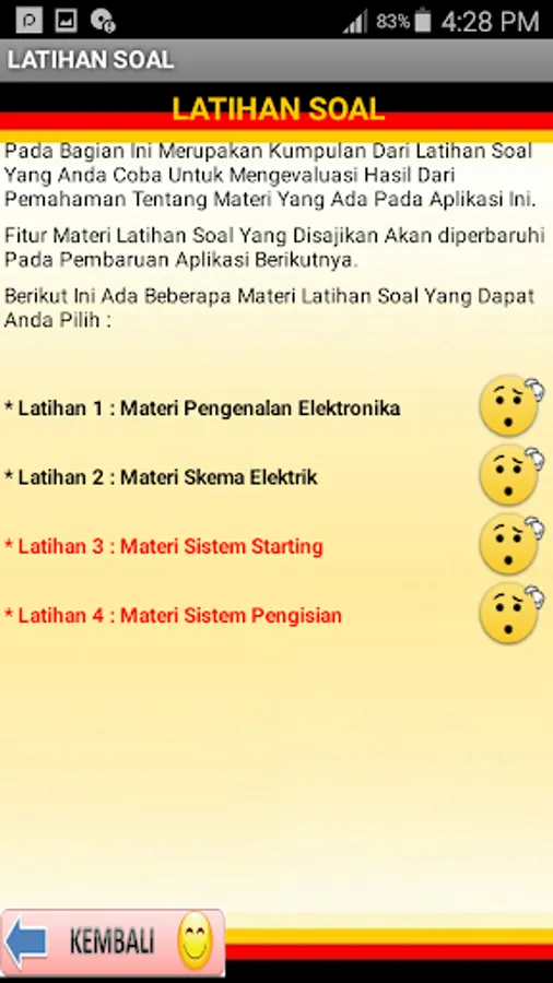 Konten isi aplikasi ini terdapat 8 materi yang akan disajikan, yaitu :