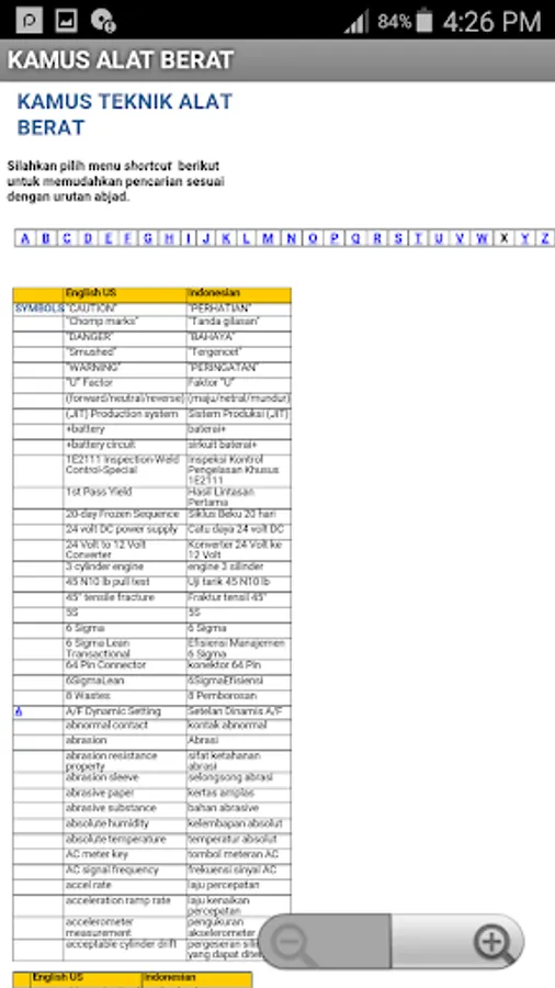 Materi ini berisikan tentang istilah kata atau terjemahan mengenai dibidang Alat Berat dan Elektronika dari A sampai Z.