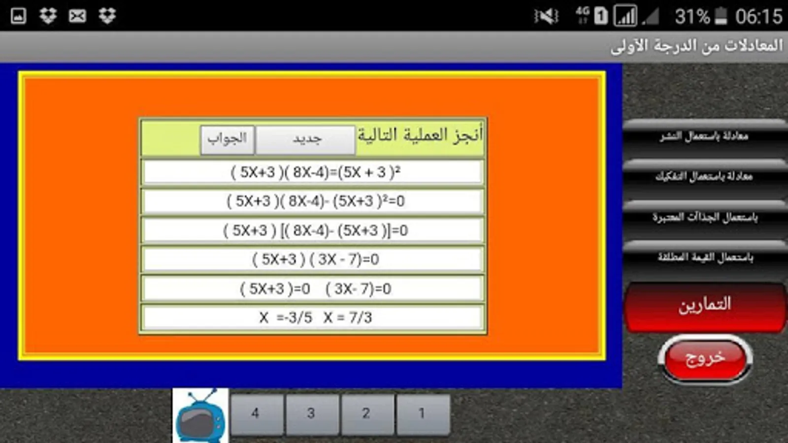 Application Math Exper is a training program and review of Chapter equations for students of 9th Base Tunisians