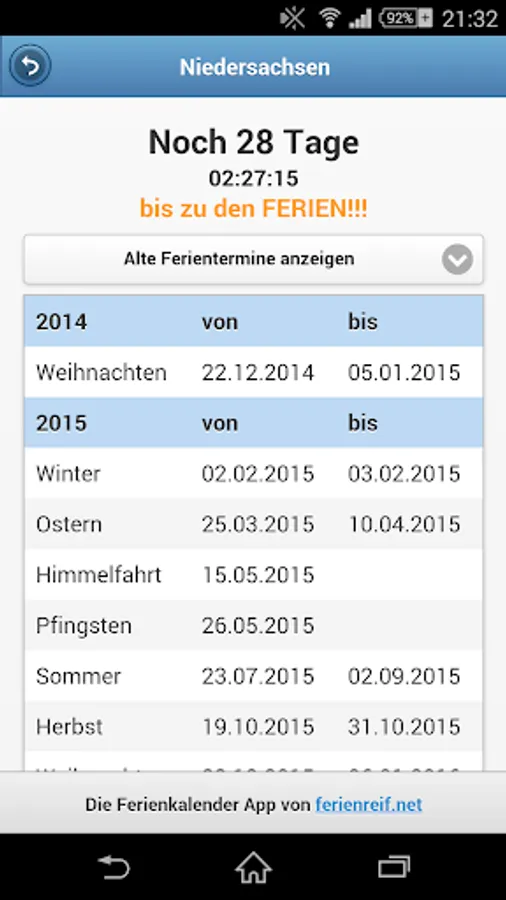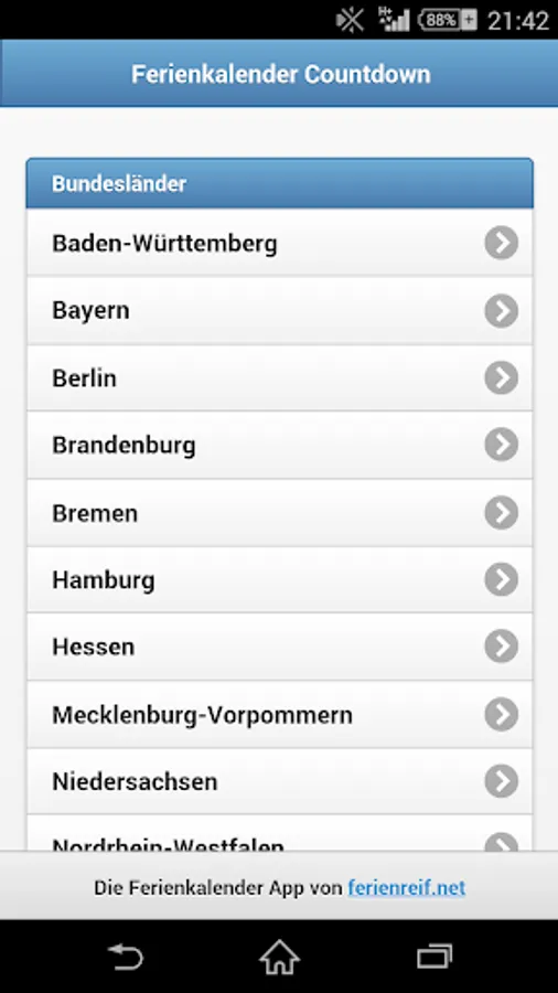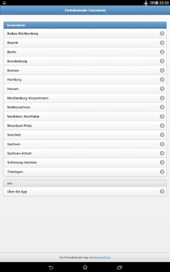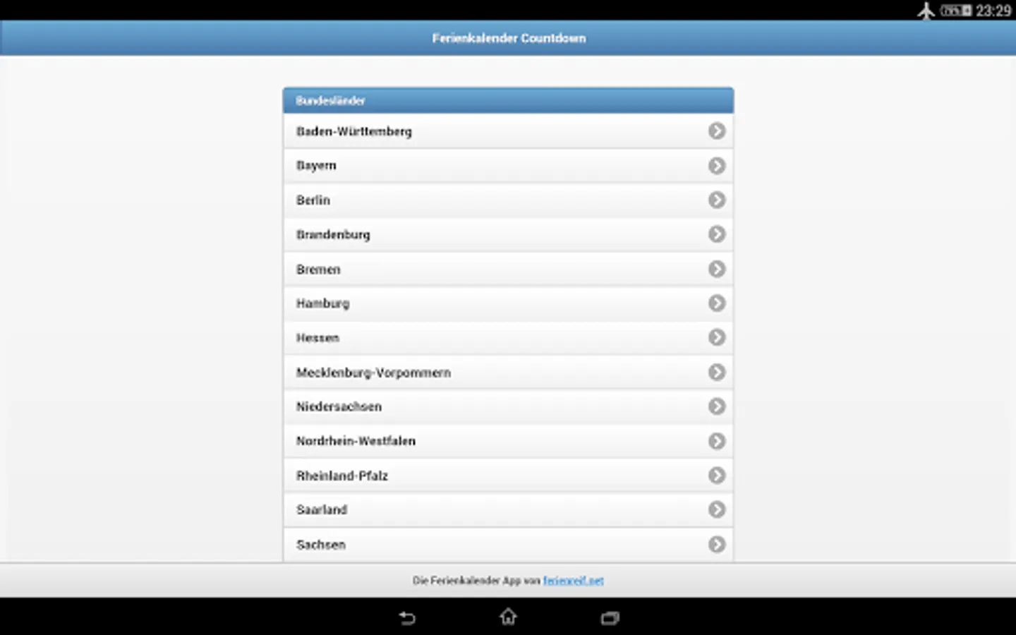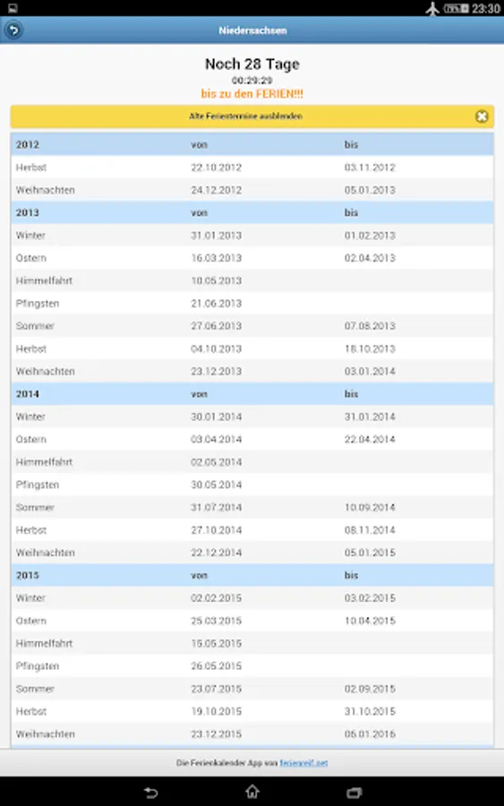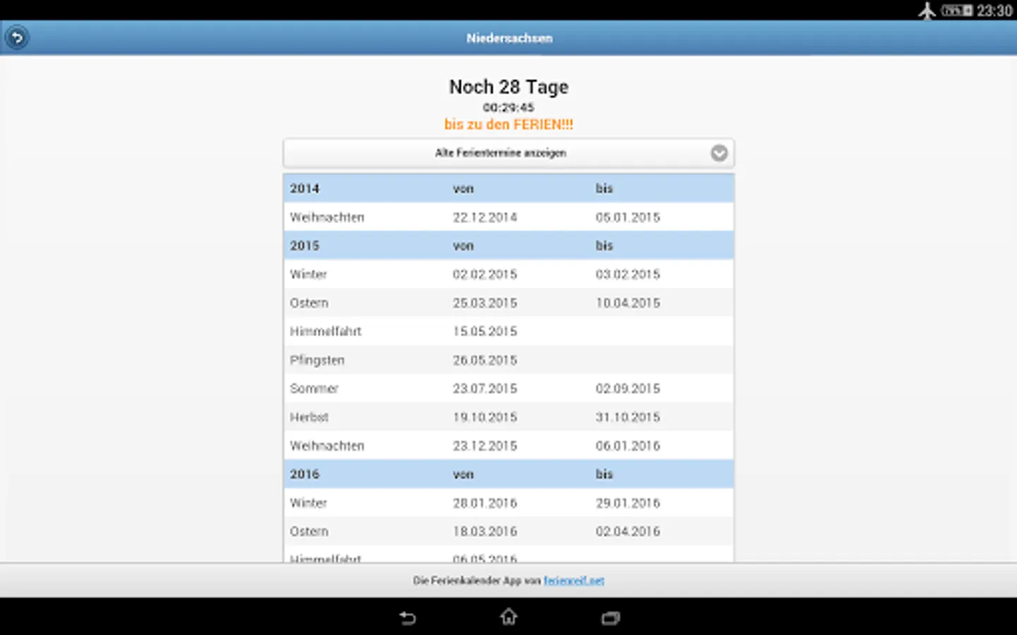 All vacation dates and school holidays from Germany are clearly arranged in one app.