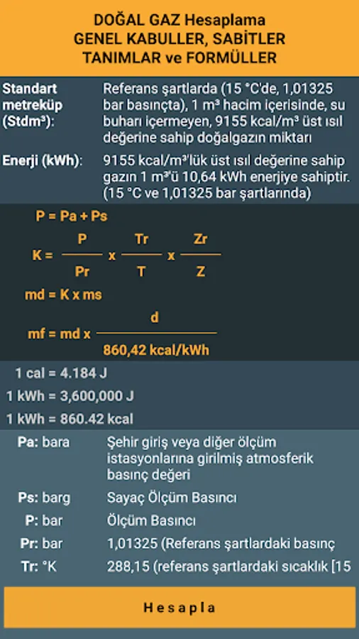 It is a utility that is used to calculate the amount of natural gas consumption in standard cubic meter (Stdm³) and kilowatt hour (kWh) and formulas, constants, general assumptions used in determination of K coefficient and a sample calculation can be done with the entered values.