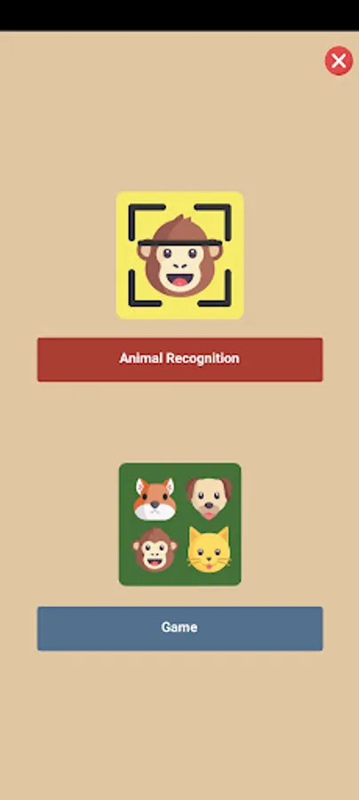 2. On the Home screen, users can choose the Animal Recognition button or Game button.