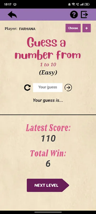 • Easy level - Guess a random number between 1 to 10 within 3 attempts.