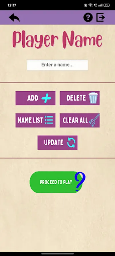 1. Type a name (maximum 20 characters) into the text box then click the Add button to add new player name.