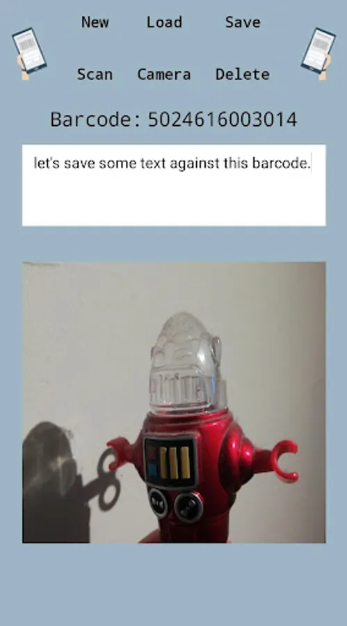 To retrieve what you've previously saved, just scan a barcode to see what's been saved against it.