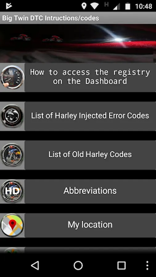 In this application you can find a list of HD motorcycles error codes that were taken from the internet and public domain, these errors are displayed in the Harley motorcycle panel and consulting its meaning you can make a better decision.
