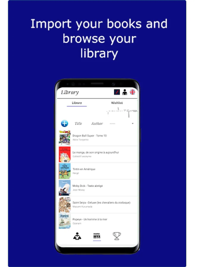 For adults, this application allows you to reference your books (virtual library), to keep track of your reading desires (library of your desires). You can read several books at the same time, the application keeps bookmarks and reading times per book.