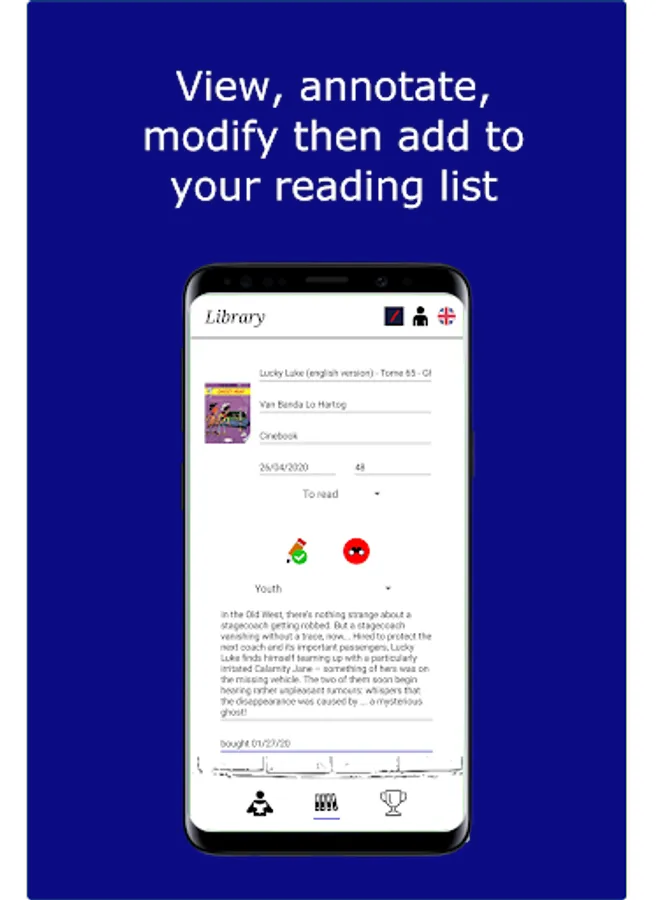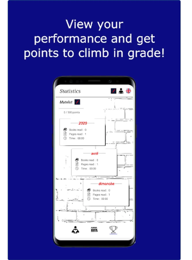 It is often difficult to motivate children to read a book regularly ... With this application, they reach a goal (for example 30 min of reading per day) quite simply. If the reading is regular, they earn points and can climb the ranks to the rank of admiral !!! The application allows you to view their progress and keep track of their book (s) or their comic book (read or read).