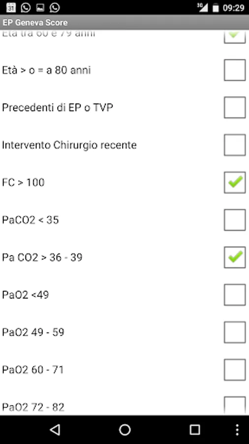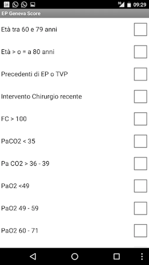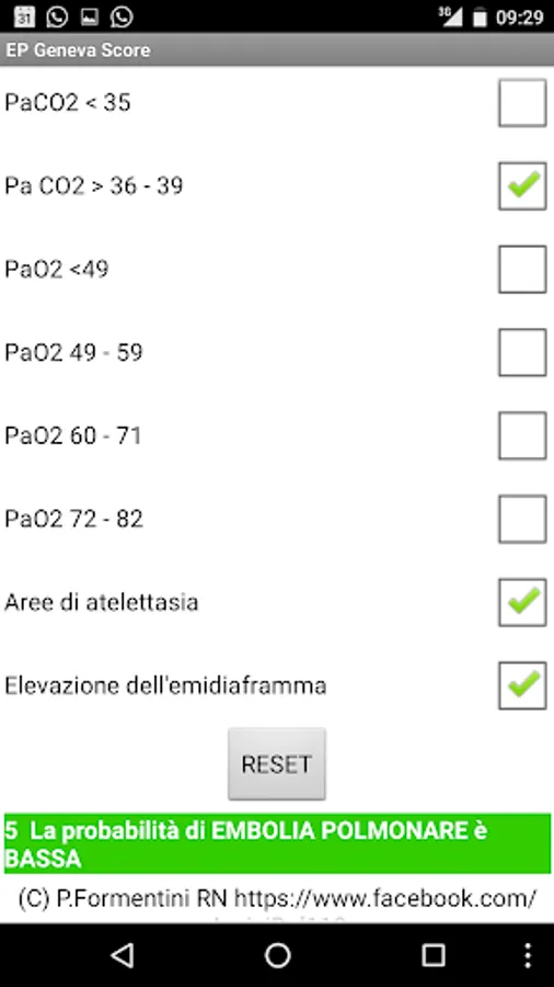 calculation of the risk of pulmonary embolism according criter GENEVA