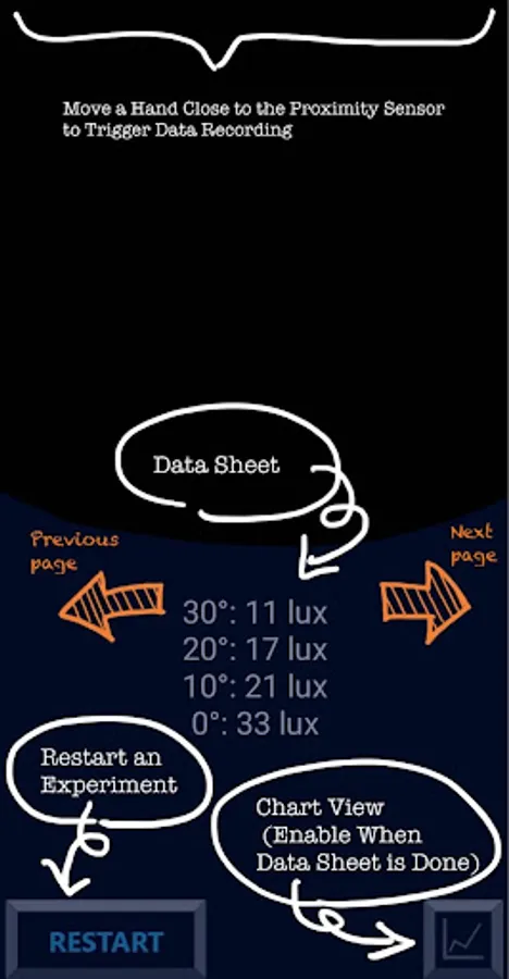 5. Switch to Chart View in the App and check the functional relation between illuminance and (cosθ) ^ 2.